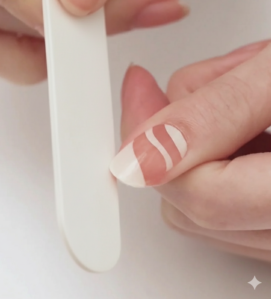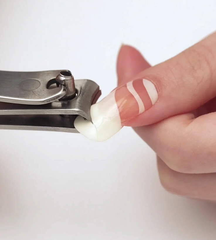 Corte: Con un cutter, tijeras o lima, corta el gel hasta el final de la uña, dejando un pequeño sobrante.