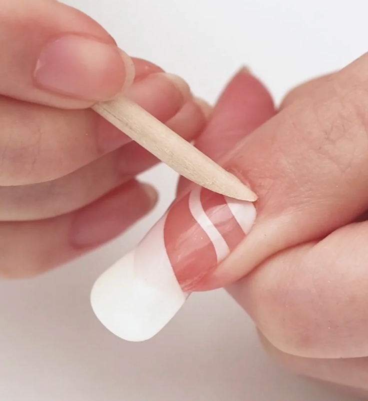 Empuja las cutículas hacia atrás: usa un palito de naranjo para empujar suavemente las cutículas hacia atrás.